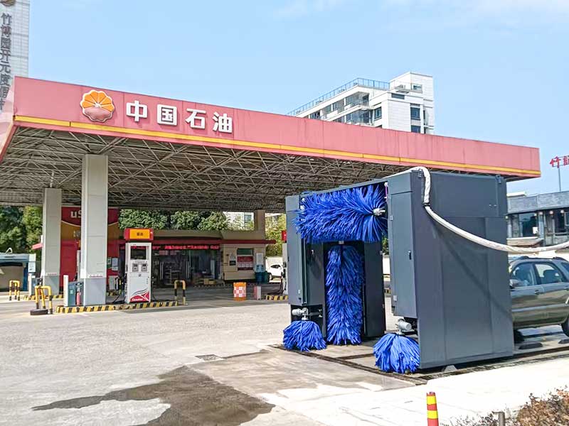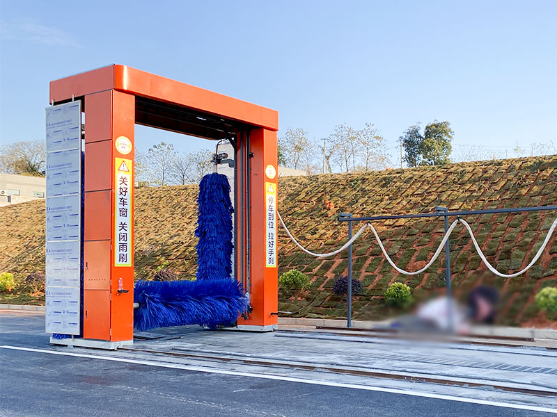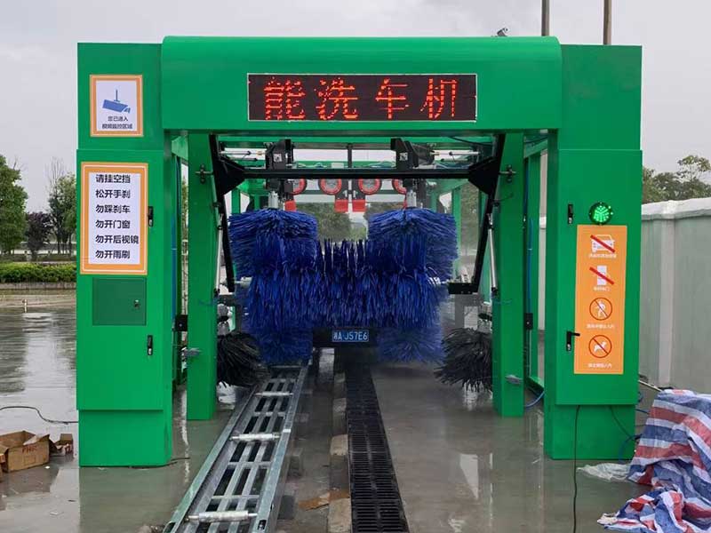 往复式龙门洗车机,占地需40平方,长10米宽4米。可清洗小汽车、SUV、商务车、面包车等。洗车时,车辆静止,关闭车窗、雨刷、后视镜,机器来回移动通过毛刷和高压水的方式清洗车辆,最后通过洗车设备顶部风干系统,自动吹干,耗时约5分钟左右。该设备购买率较高,广泛使用各种行业,如加油站、洗车美容店、洗车店、单位停车场等等。