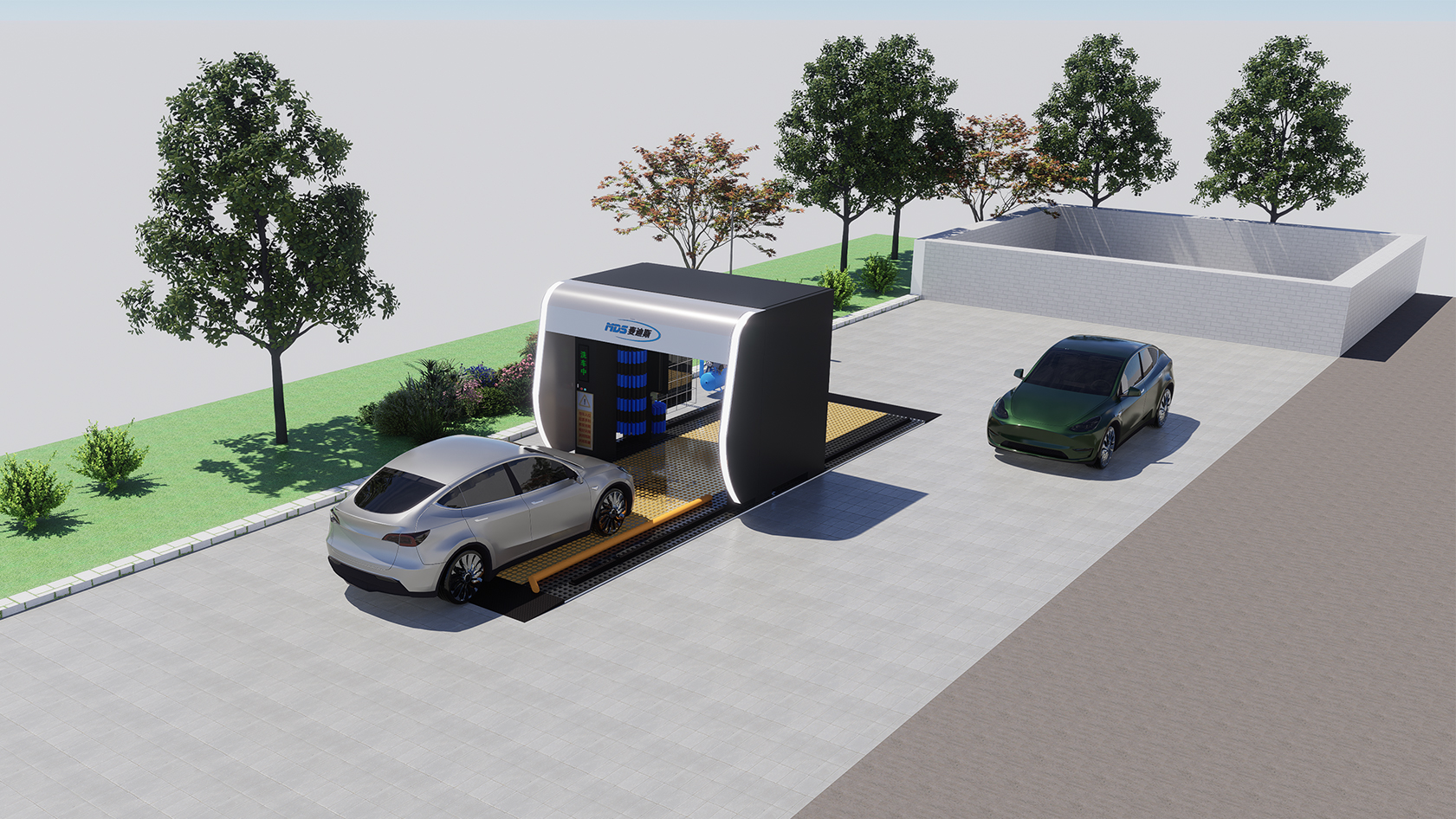 往复式龙门洗车机,占地需40平方,长10米宽4米。可清洗小汽车、SUV、商务车、面包车等。洗车时,车辆静止,关闭车窗、雨刷、后视镜,机器来回移动通过毛刷和高压水的方式清洗车辆,最后通过洗车设备顶部风干系统,自动吹干,耗时约5分钟左右。该设备购买率较高,广泛使用各种行业,如加油站、洗车美容店、洗车店、单位停车场等等。